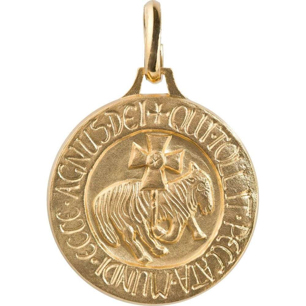 Medaljong, Agnus Dei. Forgyllet messing